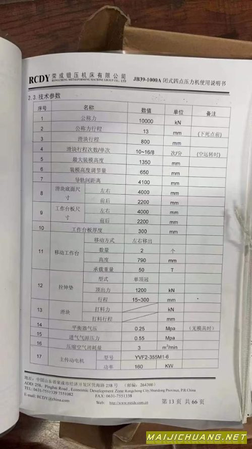 荣锻四点机械压力机冲压生产线::(1000T/800T/630T/630T)多点顶出侧移双出移动台,有效台面2.2米4米。设备少用,行程800mm,装模高度1350mm,在位出售!需要的老板联系! 信息编号:S271447 |